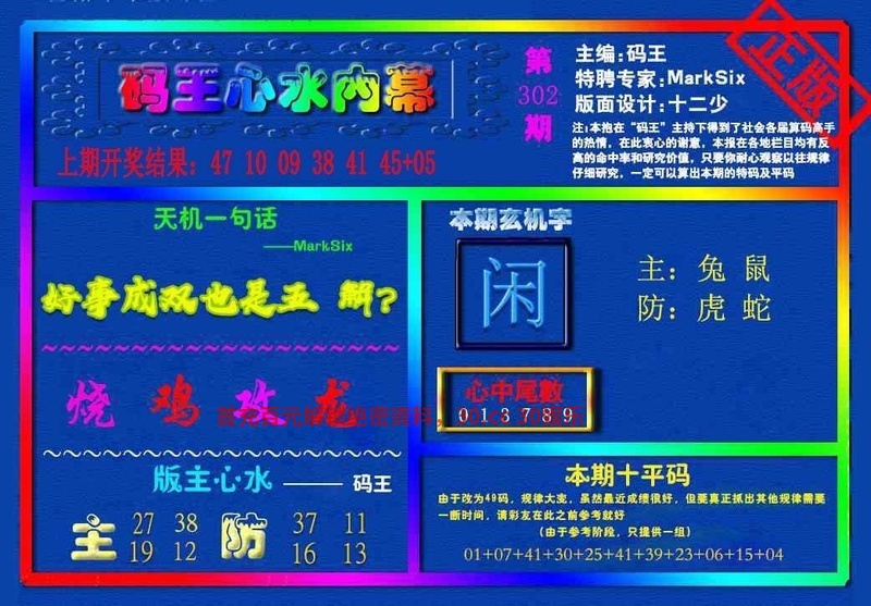 | 306期:🎋 02.05.06.08.11.12.14.17.18.20.23.24 26.28.30.32.35.36.38.41.42.44.47.49 |